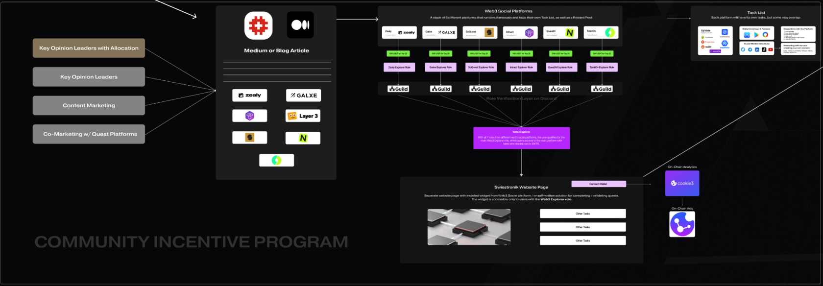 Community activation platforms like Zealy, Galxe, TaskOn, Intract, SoQuest, and others can host these campaigns, incorporating separate point-based systems, tiered achievements, and role-specific activities.
